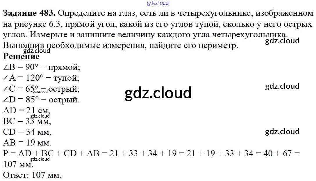 Ответ на задание 483 Учебник Математика за 5 (пятый) класс Дорофеев, Шарыгин, Суворова, Бунимович, Кузнецова, Минаева, Рослова 2015