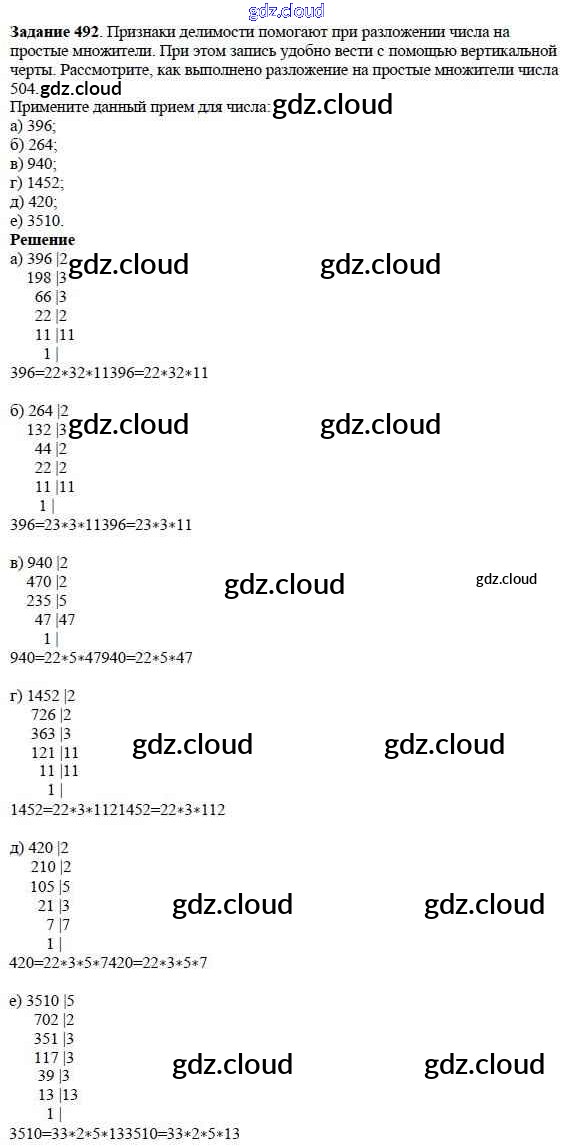 Ответ на задание 492 Учебник Математика за 5 (пятый) класс Дорофеев, Шарыгин, Суворова, Бунимович, Кузнецова, Минаева, Рослова 2015