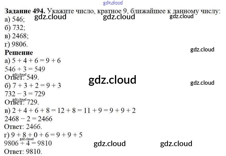 Ответ на задание 494 Учебник Математика за 5 (пятый) класс Дорофеев, Шарыгин, Суворова, Бунимович, Кузнецова, Минаева, Рослова 2015