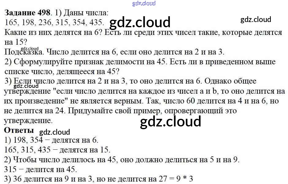 Ответ на задание 498 Учебник Математика за 5 (пятый) класс Дорофеев, Шарыгин, Суворова, Бунимович, Кузнецова, Минаева, Рослова 2015