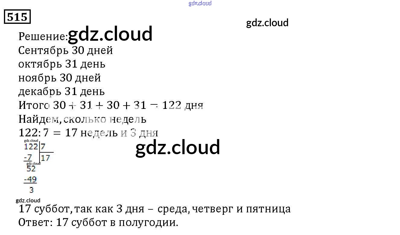 Ответ на задание 515 Учебник Математика за 5 (пятый) класс Дорофеев, Шарыгин, Суворова, Бунимович, Кузнецова, Минаева, Рослова 2015