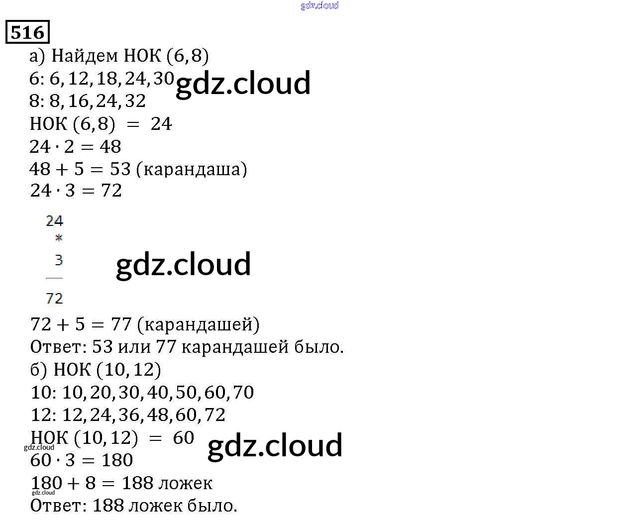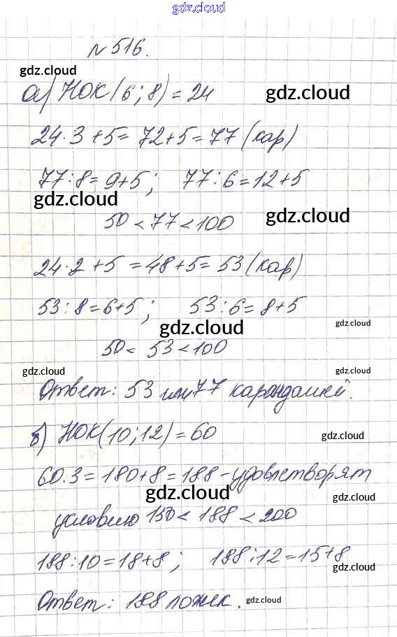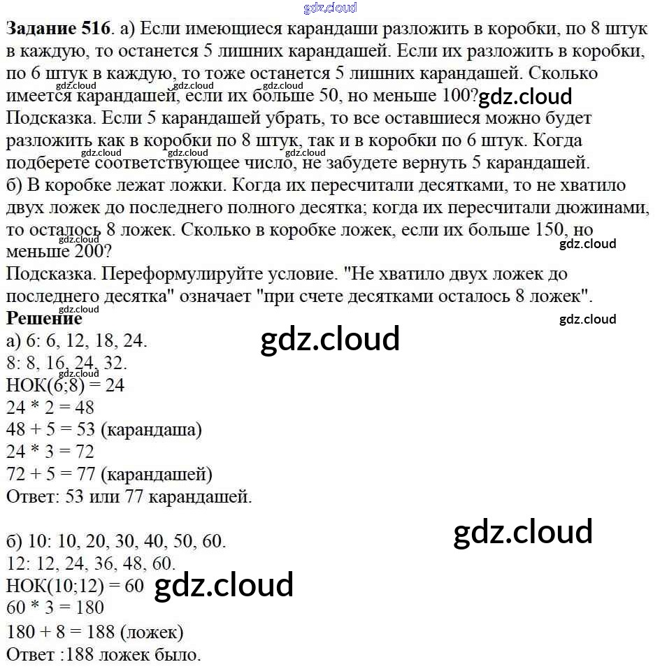 Ответ на задание 516 Учебник Математика за 5 (пятый) класс Дорофеев, Шарыгин, Суворова, Бунимович, Кузнецова, Минаева, Рослова 2015