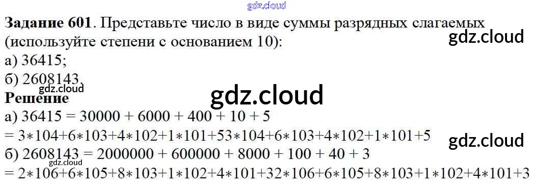Ответ на задание 601 Учебник Математика за 5 (пятый) класс Дорофеев, Шарыгин, Суворова, Бунимович, Кузнецова, Минаева, Рослова 2015