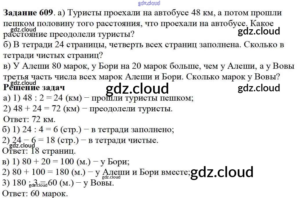 Ответ на задание 609 Учебник Математика за 5 (пятый) класс Дорофеев, Шарыгин, Суворова, Бунимович, Кузнецова, Минаева, Рослова 2015