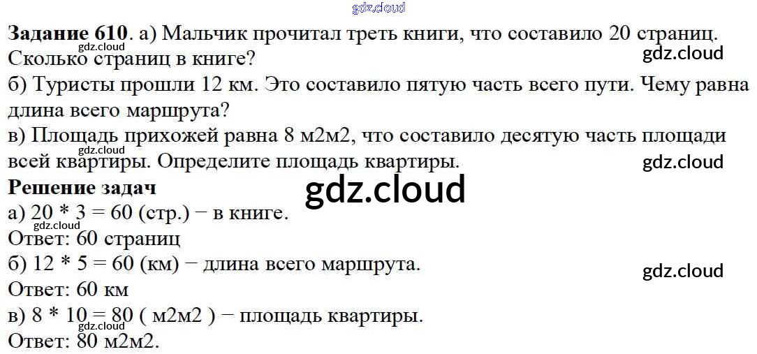 Ответ на задание 610 Учебник Математика за 5 (пятый) класс Дорофеев, Шарыгин, Суворова, Бунимович, Кузнецова, Минаева, Рослова 2015