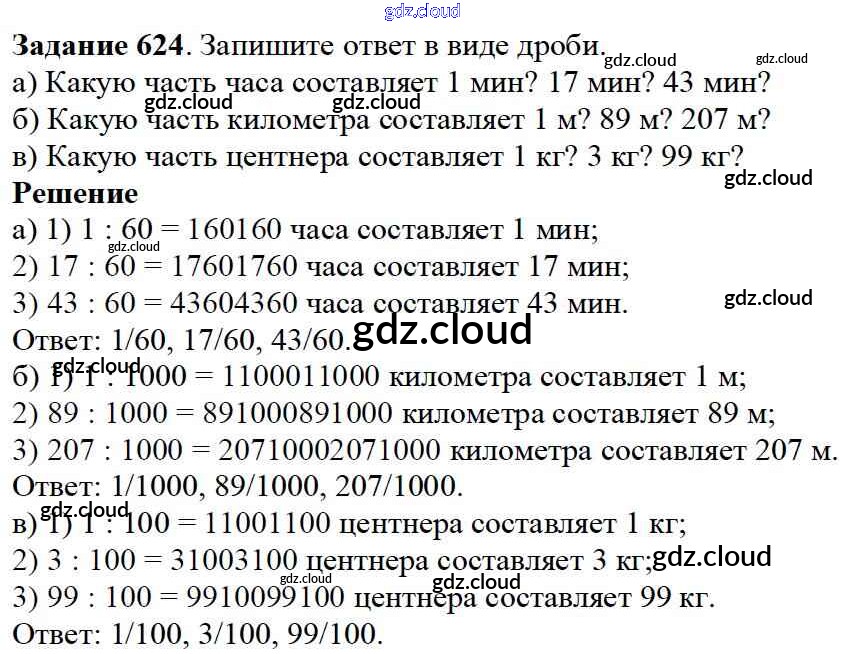 Ответ на задание 624 Учебник Математика за 5 (пятый) класс Дорофеев, Шарыгин, Суворова, Бунимович, Кузнецова, Минаева, Рослова 2015