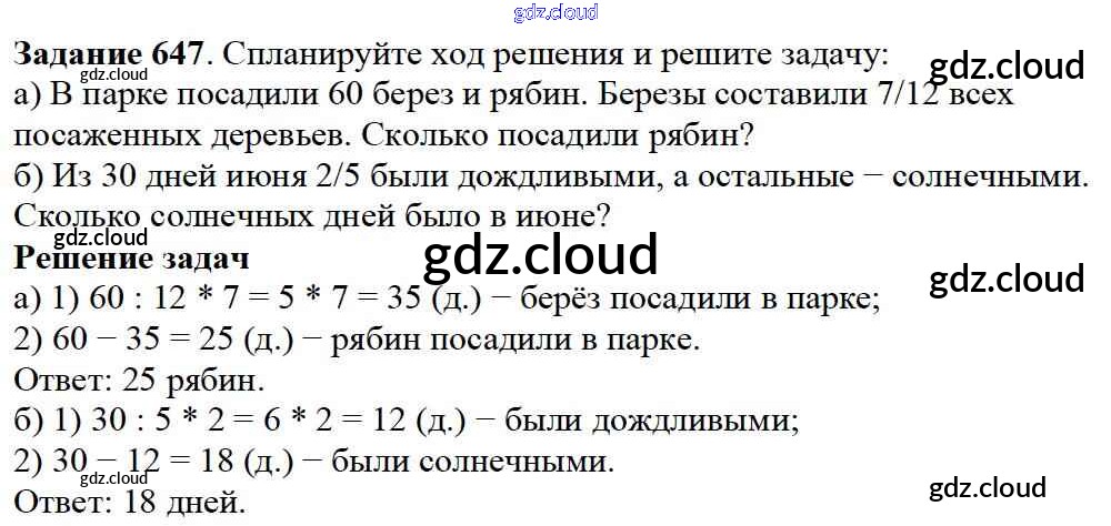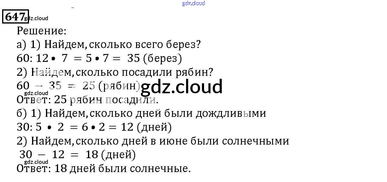 Ответ на задание 647 Учебник Математика за 5 (пятый) класс Дорофеев, Шарыгин, Суворова, Бунимович, Кузнецова, Минаева, Рослова 2015