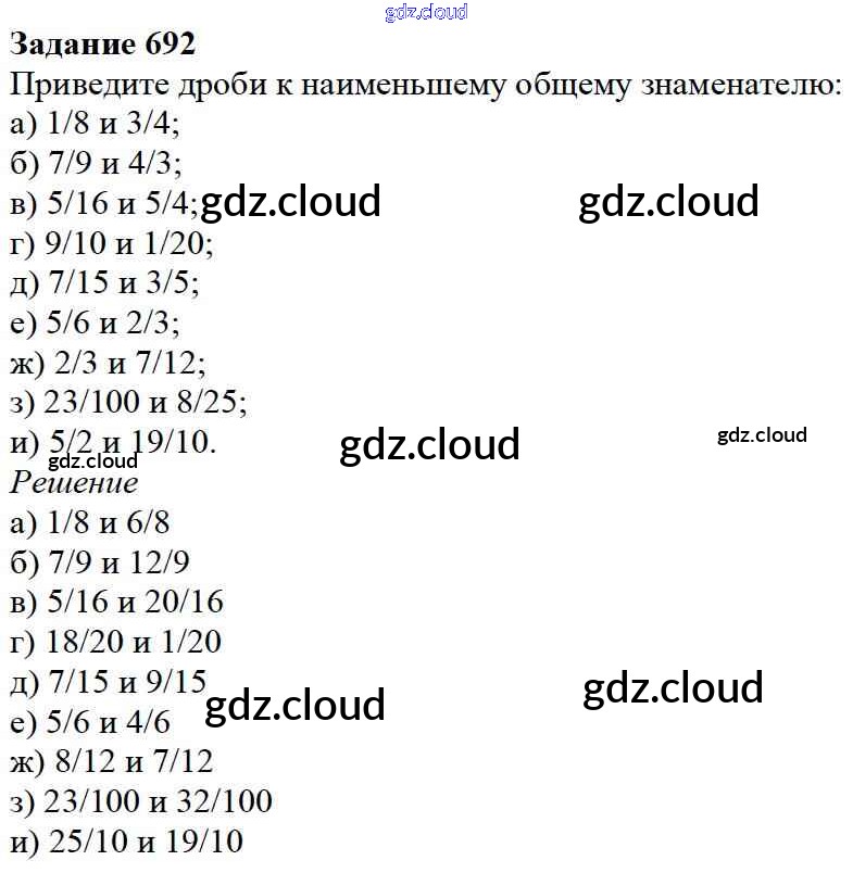 Ответ на задание 692 Учебник Математика за 5 (пятый) класс Дорофеев, Шарыгин, Суворова, Бунимович, Кузнецова, Минаева, Рослова 2015