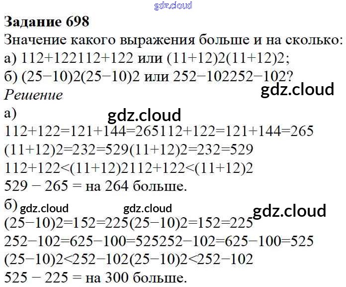 Ответ на задание 698 Учебник Математика за 5 (пятый) класс Дорофеев, Шарыгин, Суворова, Бунимович, Кузнецова, Минаева, Рослова 2015