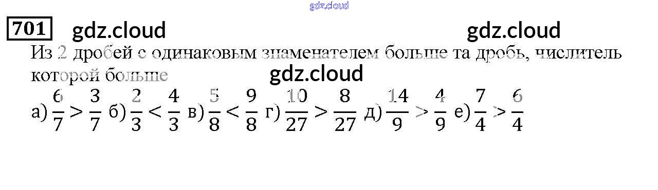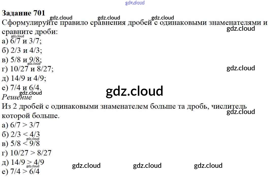 Ответ на задание 701 Учебник Математика за 5 (пятый) класс Дорофеев, Шарыгин, Суворова, Бунимович, Кузнецова, Минаева, Рослова 2015