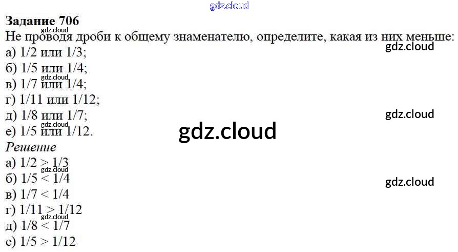 Ответ на задание 706 Учебник Математика за 5 (пятый) класс Дорофеев, Шарыгин, Суворова, Бунимович, Кузнецова, Минаева, Рослова 2015