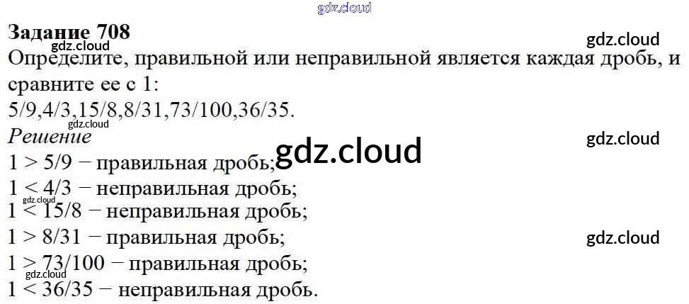 Ответ на задание 708 Учебник Математика за 5 (пятый) класс Дорофеев, Шарыгин, Суворова, Бунимович, Кузнецова, Минаева, Рослова 2015