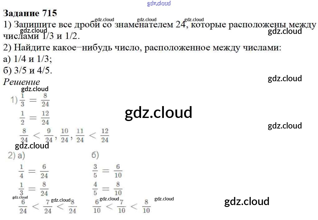 Ответ на задание 715 Учебник Математика за 5 (пятый) класс Дорофеев, Шарыгин, Суворова, Бунимович, Кузнецова, Минаева, Рослова 2015