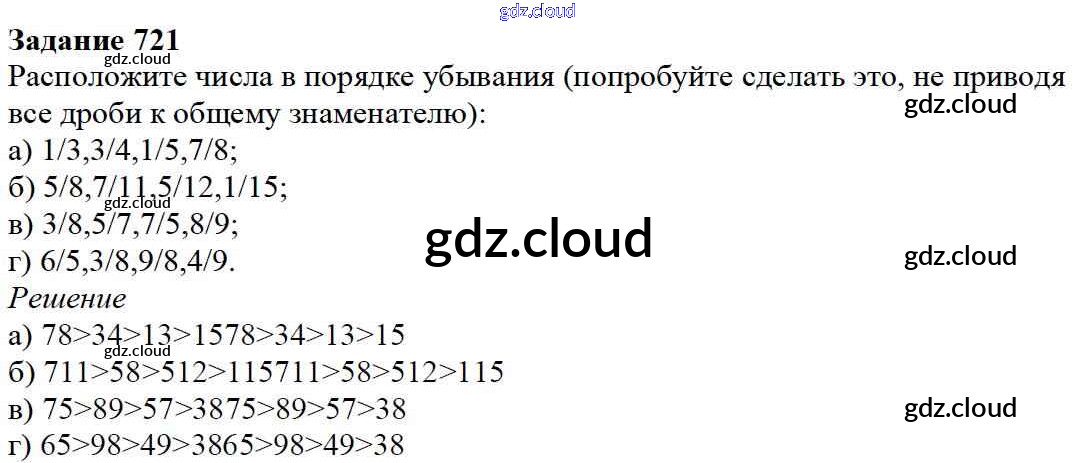 Ответ на задание 721 Учебник Математика за 5 (пятый) класс Дорофеев, Шарыгин, Суворова, Бунимович, Кузнецова, Минаева, Рослова 2015
