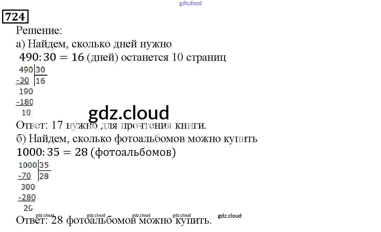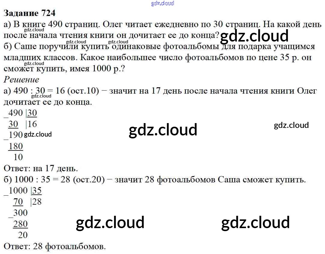 Ответ на задание 724 Учебник Математика за 5 (пятый) класс Дорофеев, Шарыгин, Суворова, Бунимович, Кузнецова, Минаева, Рослова 2015