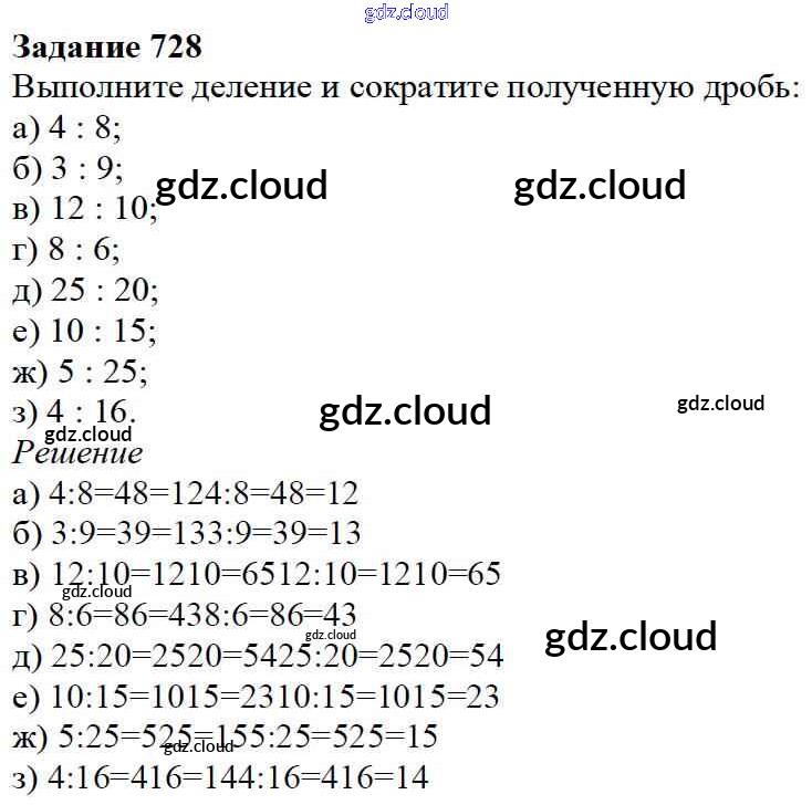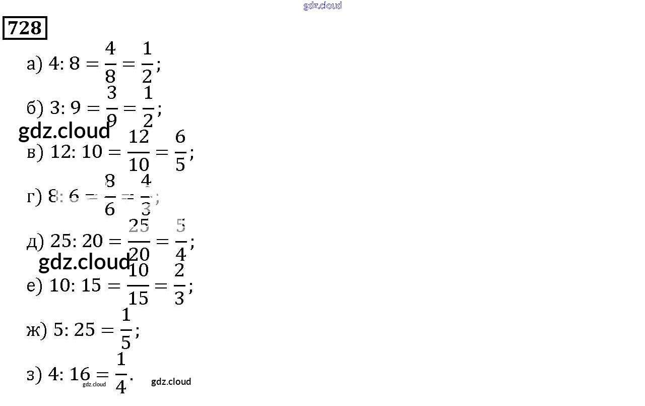 Ответ на задание 728 Учебник Математика за 5 (пятый) класс Дорофеев, Шарыгин, Суворова, Бунимович, Кузнецова, Минаева, Рослова 2015