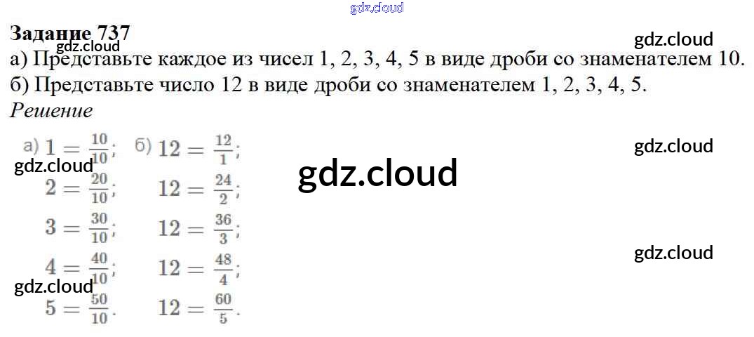 Ответ на задание 737 Учебник Математика за 5 (пятый) класс Дорофеев, Шарыгин, Суворова, Бунимович, Кузнецова, Минаева, Рослова 2015