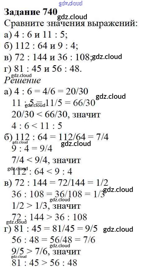Ответ на задание 740 Учебник Математика за 5 (пятый) класс Дорофеев, Шарыгин, Суворова, Бунимович, Кузнецова, Минаева, Рослова 2015