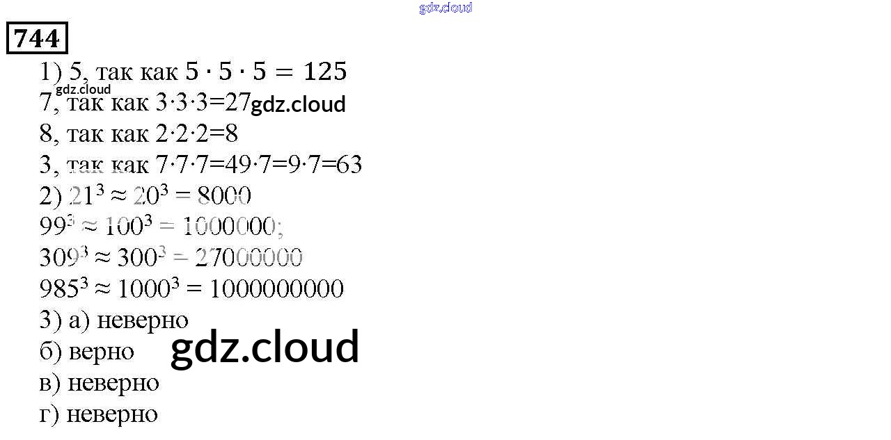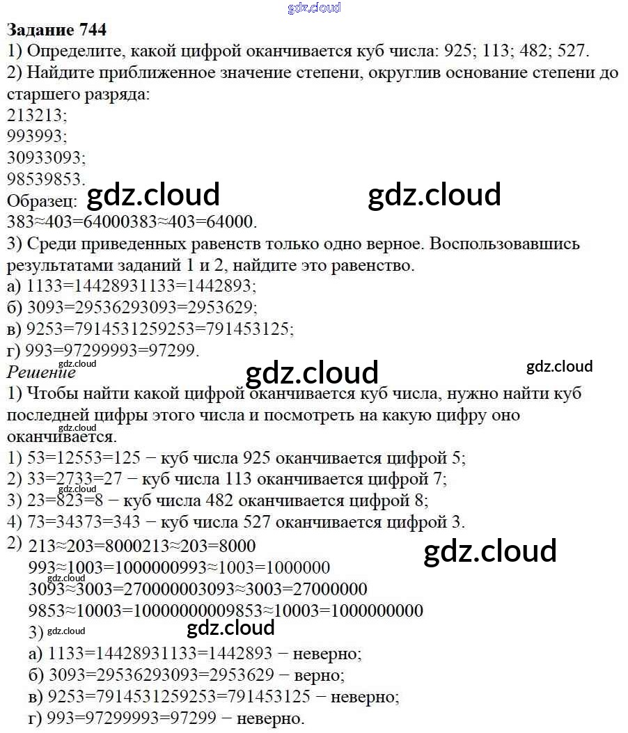 Ответ на задание 744 Учебник Математика за 5 (пятый) класс Дорофеев, Шарыгин, Суворова, Бунимович, Кузнецова, Минаева, Рослова 2015