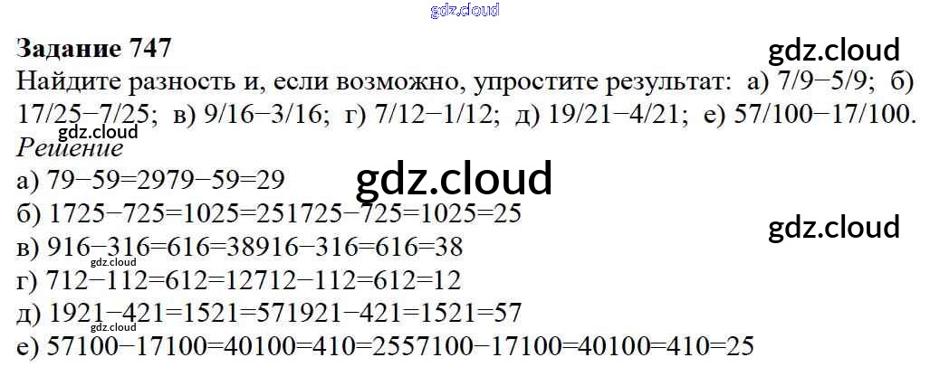Ответ на задание 747 Учебник Математика за 5 (пятый) класс Дорофеев, Шарыгин, Суворова, Бунимович, Кузнецова, Минаева, Рослова 2015