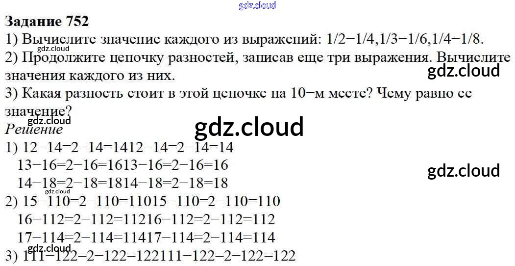 Ответ на задание 752 Учебник Математика за 5 (пятый) класс Дорофеев, Шарыгин, Суворова, Бунимович, Кузнецова, Минаева, Рослова 2015