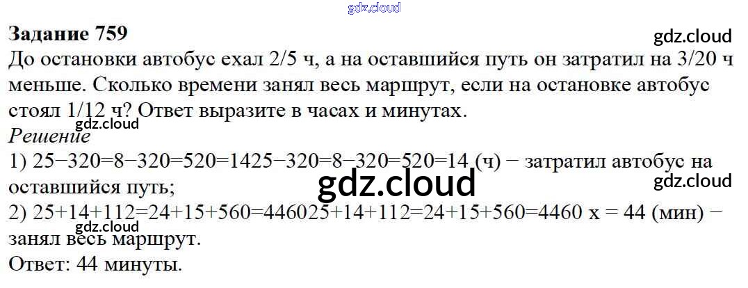 Ответ на задание 759 Учебник Математика за 5 (пятый) класс Дорофеев, Шарыгин, Суворова, Бунимович, Кузнецова, Минаева, Рослова 2015
