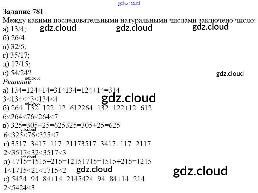 Ответ на задание 781 Учебник Математика за 5 (пятый) класс Дорофеев, Шарыгин, Суворова, Бунимович, Кузнецова, Минаева, Рослова 2015