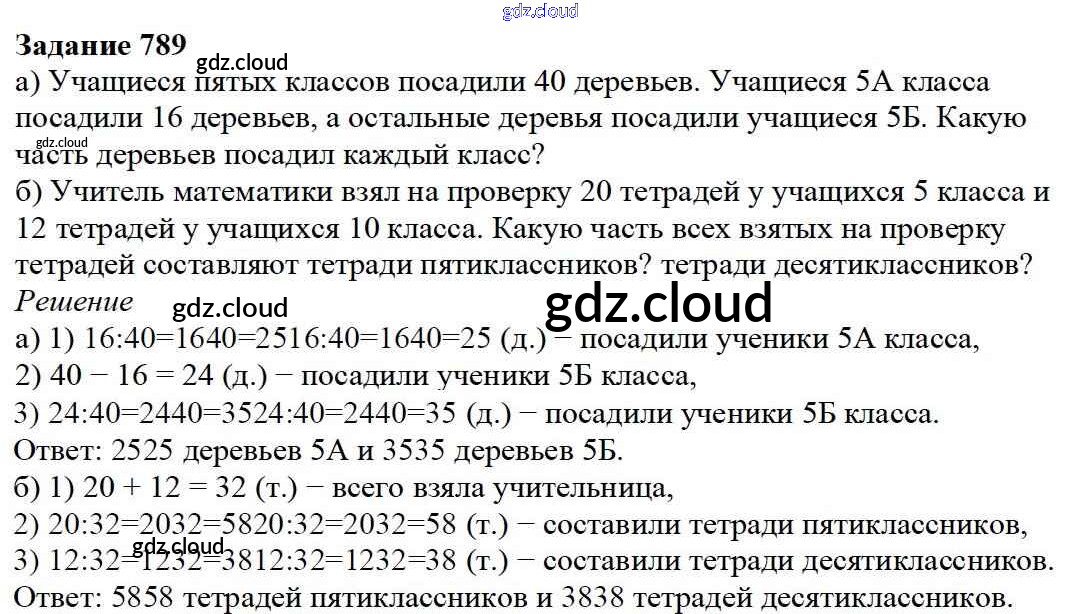 Ответ на задание 789 Учебник Математика за 5 (пятый) класс Дорофеев, Шарыгин, Суворова, Бунимович, Кузнецова, Минаева, Рослова 2015