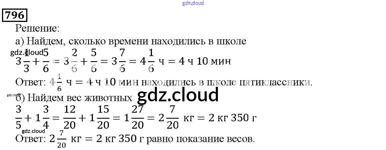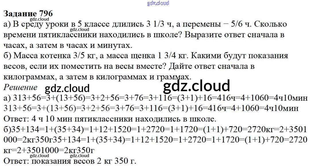 Ответ на задание 796 Учебник Математика за 5 (пятый) класс Дорофеев, Шарыгин, Суворова, Бунимович, Кузнецова, Минаева, Рослова 2015