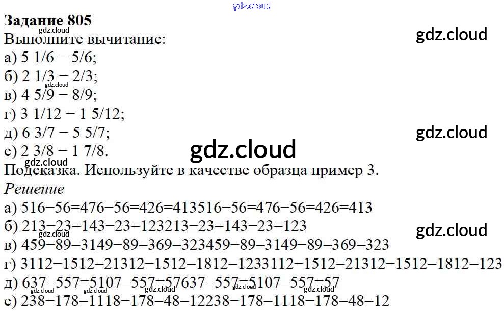 Ответ на задание 805 Учебник Математика за 5 (пятый) класс Дорофеев, Шарыгин, Суворова, Бунимович, Кузнецова, Минаева, Рослова 2015