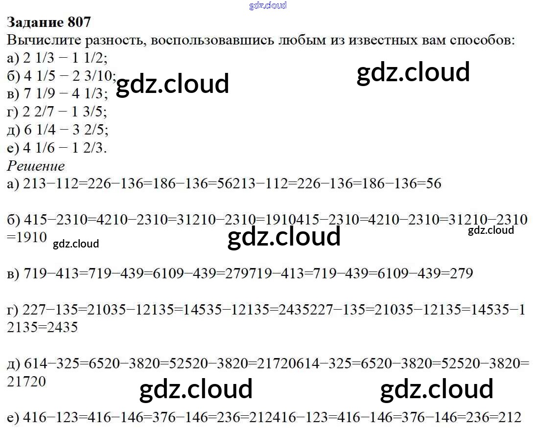 Ответ на задание 807 Учебник Математика за 5 (пятый) класс Дорофеев, Шарыгин, Суворова, Бунимович, Кузнецова, Минаева, Рослова 2015