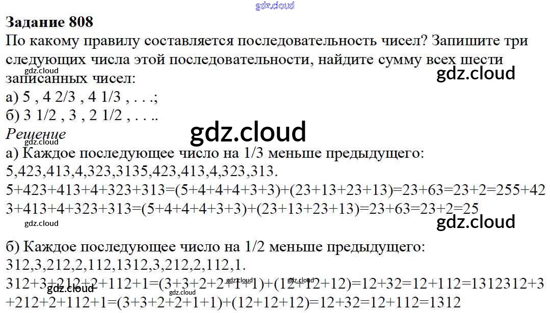 Ответ на задание 808 Учебник Математика за 5 (пятый) класс Дорофеев, Шарыгин, Суворова, Бунимович, Кузнецова, Минаева, Рослова 2015
