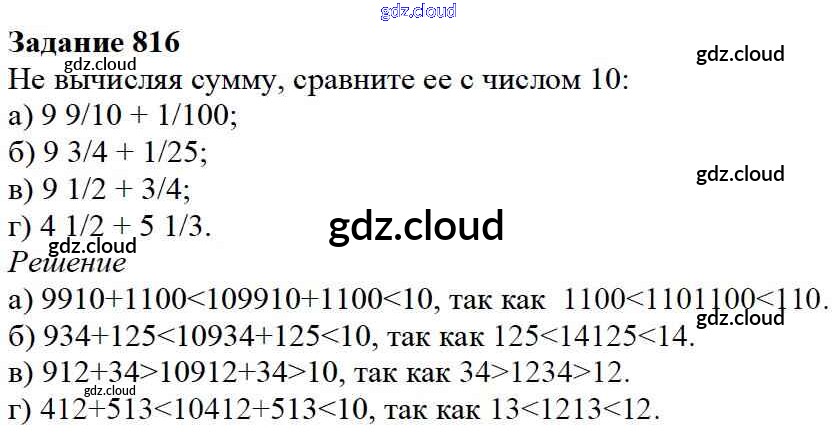 Ответ на задание 816 Учебник Математика за 5 (пятый) класс Дорофеев, Шарыгин, Суворова, Бунимович, Кузнецова, Минаева, Рослова 2015