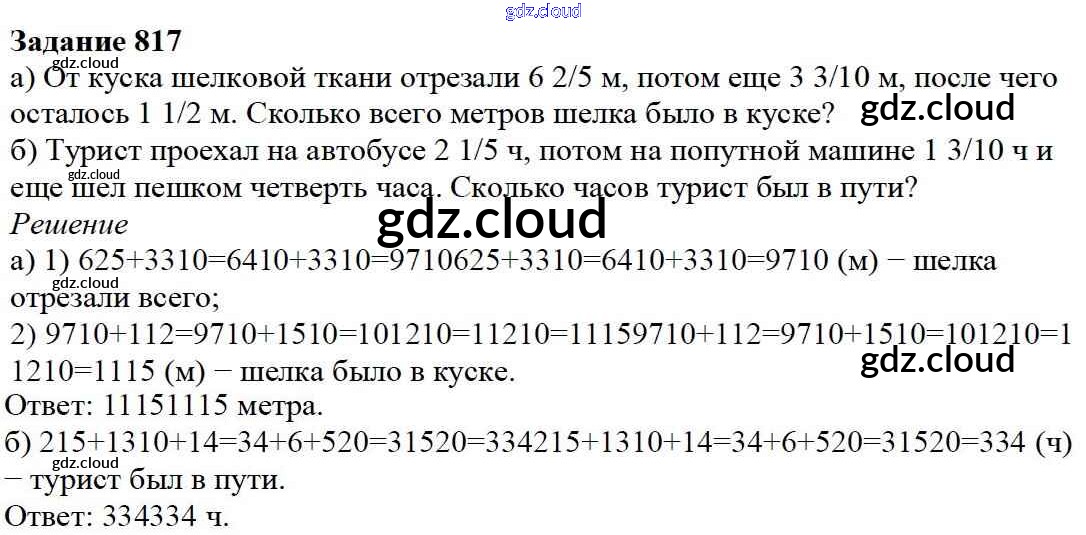 Ответ на задание 817 Учебник Математика за 5 (пятый) класс Дорофеев, Шарыгин, Суворова, Бунимович, Кузнецова, Минаева, Рослова 2015