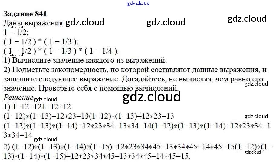 Ответ на задание 841 Учебник Математика за 5 (пятый) класс Дорофеев, Шарыгин, Суворова, Бунимович, Кузнецова, Минаева, Рослова 2015