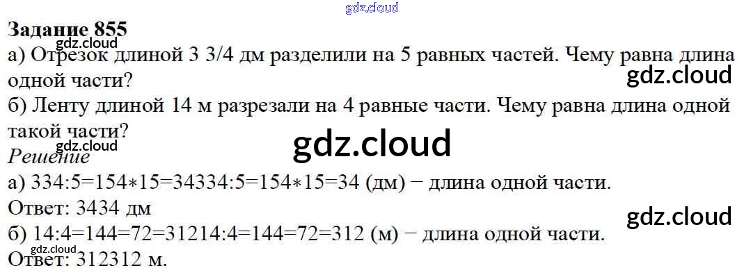 Ответ на задание 855 Учебник Математика за 5 (пятый) класс Дорофеев, Шарыгин, Суворова, Бунимович, Кузнецова, Минаева, Рослова 2015