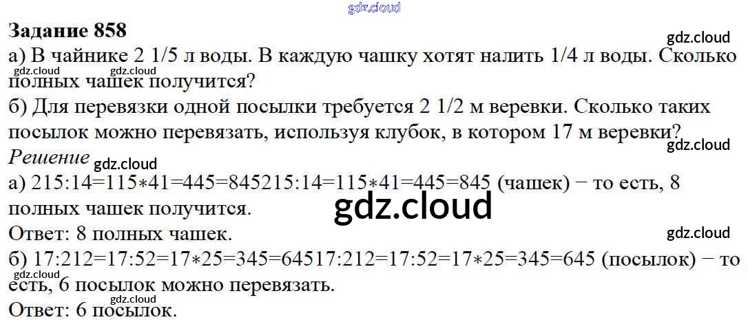 Ответ на задание 858 Учебник Математика за 5 (пятый) класс Дорофеев, Шарыгин, Суворова, Бунимович, Кузнецова, Минаева, Рослова 2015