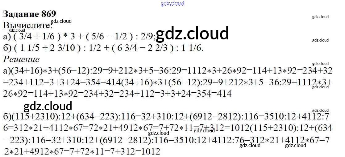 Ответ на задание 869 Учебник Математика за 5 (пятый) класс Дорофеев, Шарыгин, Суворова, Бунимович, Кузнецова, Минаева, Рослова 2015