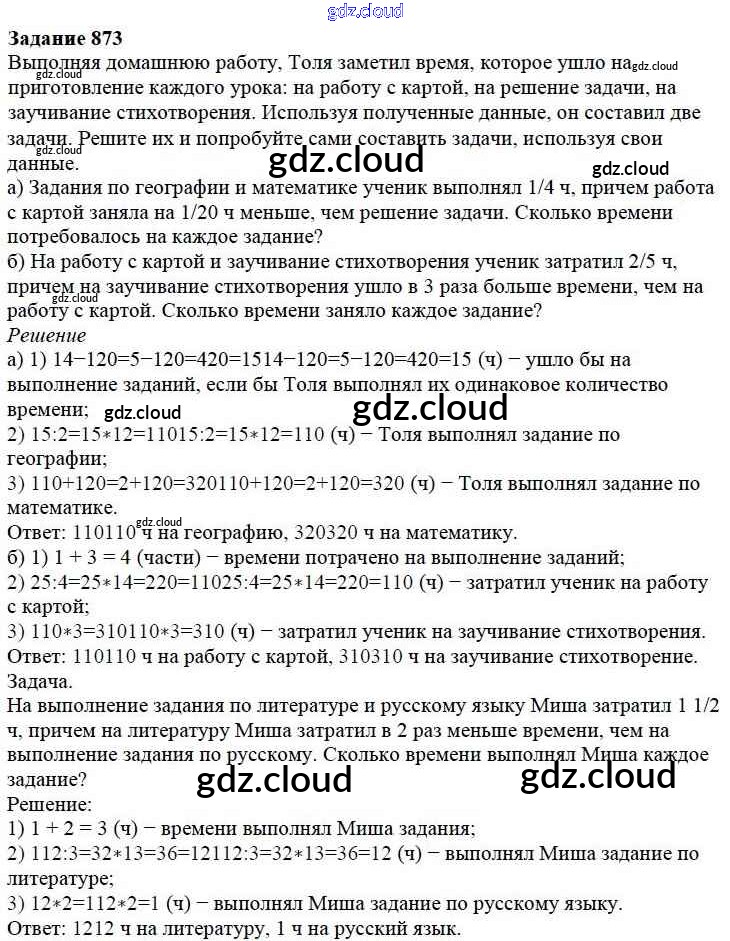 Ответ на задание 873 Учебник Математика за 5 (пятый) класс Дорофеев, Шарыгин, Суворова, Бунимович, Кузнецова, Минаева, Рослова 2015