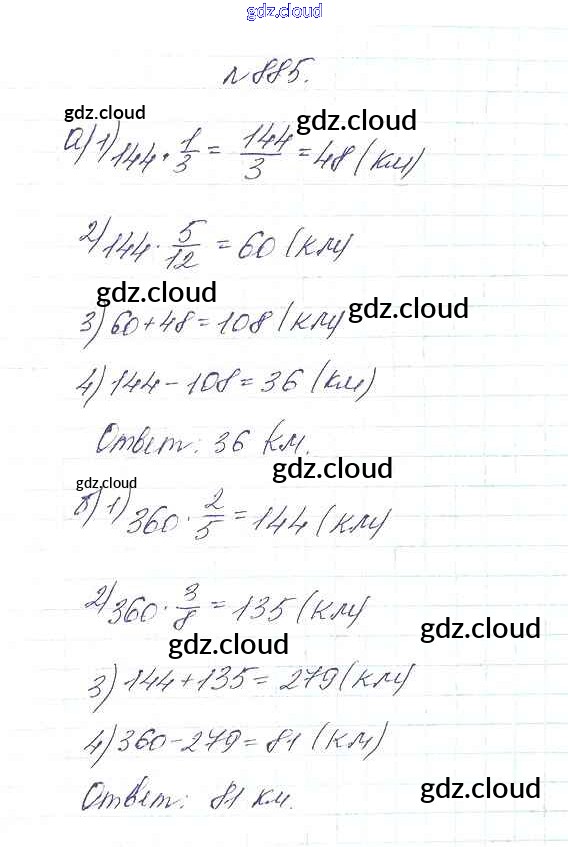 Ответ на задание 885 Учебник Математика за 5 (пятый) класс Дорофеев, Шарыгин, Суворова, Бунимович, Кузнецова, Минаева, Рослова 2015