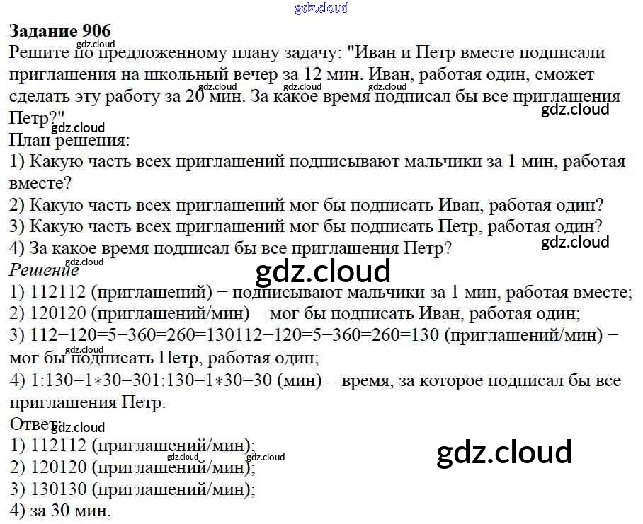 Ответ на задание 906 Учебник Математика за 5 (пятый) класс Дорофеев, Шарыгин, Суворова, Бунимович, Кузнецова, Минаева, Рослова 2015