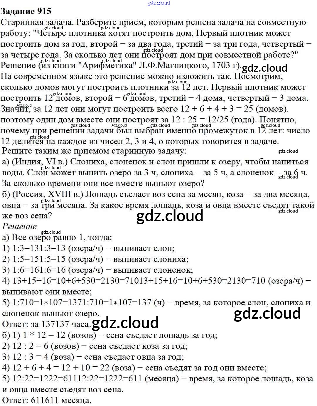 Ответ на задание 915 Учебник Математика за 5 (пятый) класс Дорофеев, Шарыгин, Суворова, Бунимович, Кузнецова, Минаева, Рослова 2015