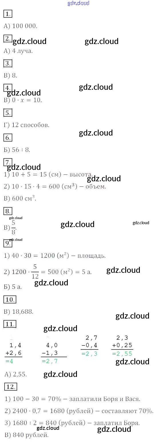 Ответы к итоговым заданиям в тестовой форме. Варианты по Математике 5 класс Учебник Мерзляк Алгоритм успеха Вентана-граф