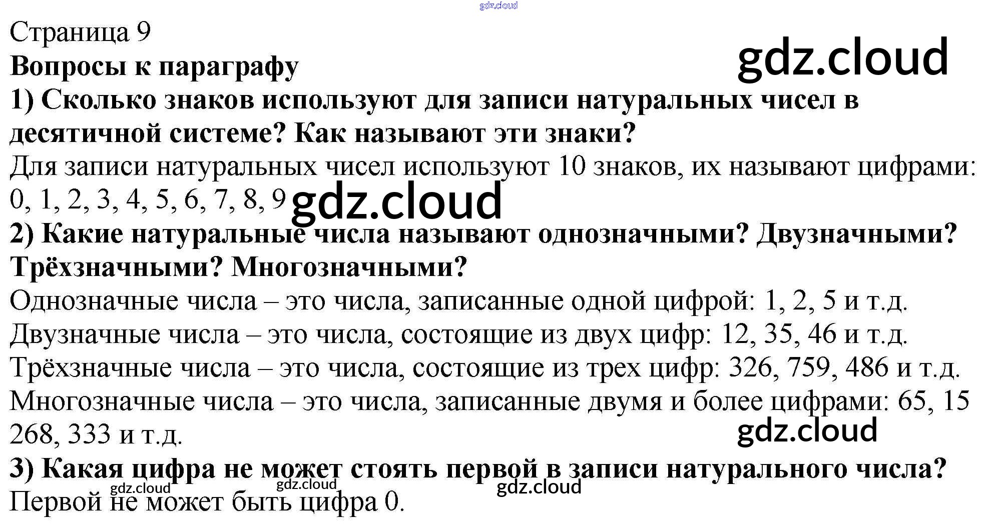 Вопросы (страница 9) §2. Цифры. Десятичная запись натуральных чисел по Математике 5 класс Учебник Мерзляк Алгоритм успеха Вентана-граф