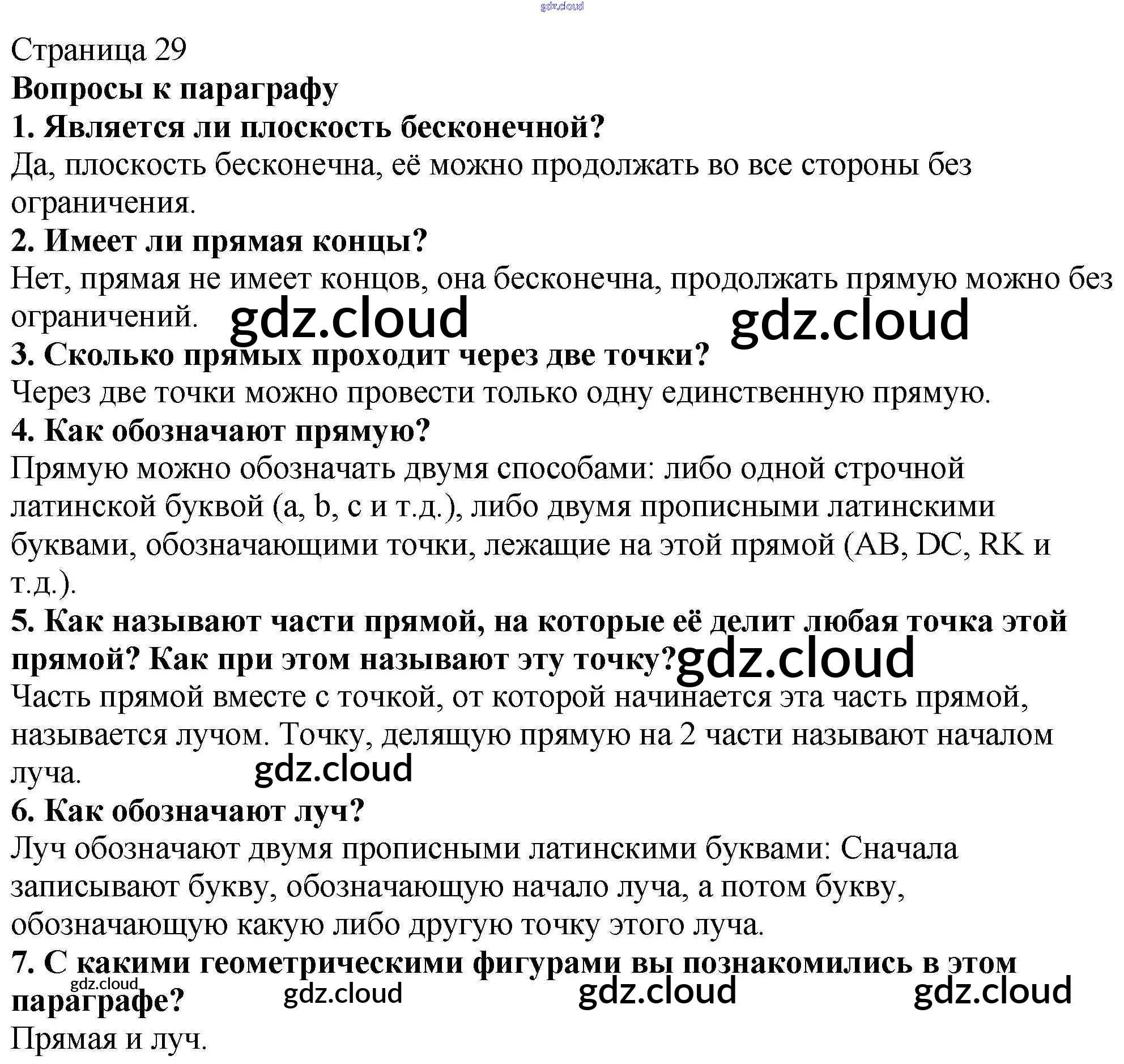 Вопросы (страница 29) §4. Плоскость. Прямая. Луч по Математике 5 класс Учебник Мерзляк Алгоритм успеха Вентана-граф