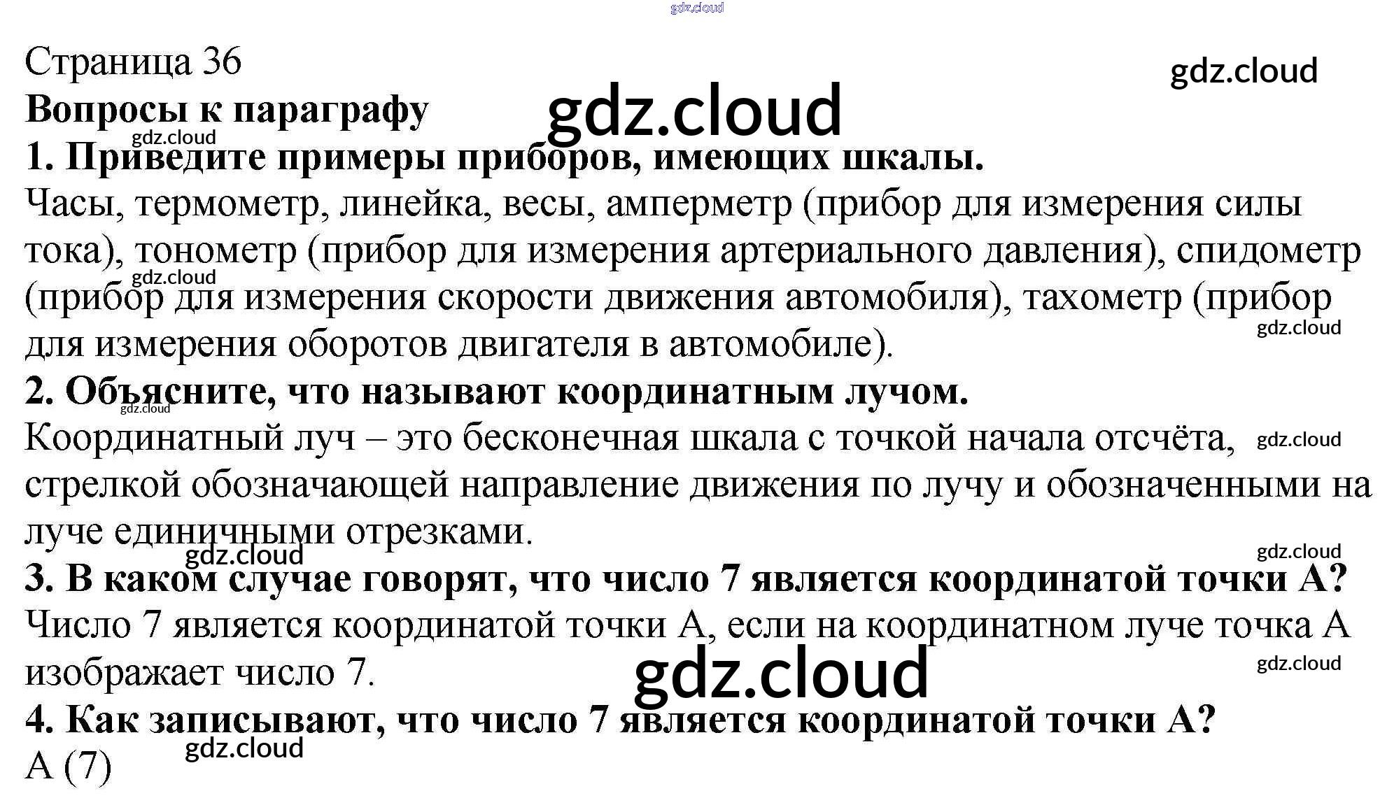 Вопросы (страница 36) §5. Шкала. Координатный луч по Математике 5 класс Учебник Мерзляк Алгоритм успеха Вентана-граф