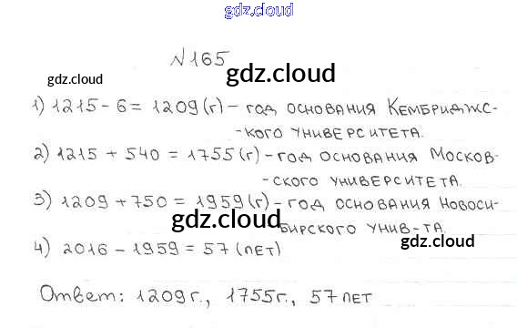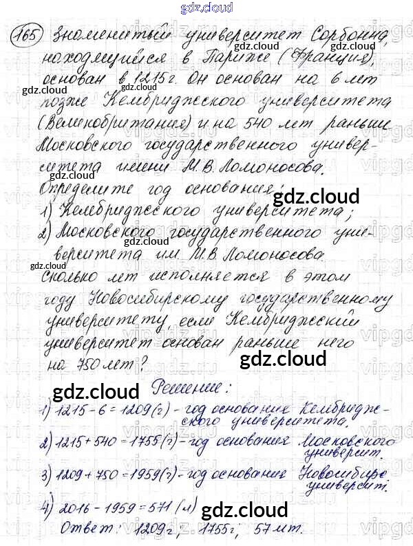 Ответ на задание 165 Учебник Математика за 5 (пятый) класс Мерзляк, Полонский, Якир Алгоритм успеха 2016