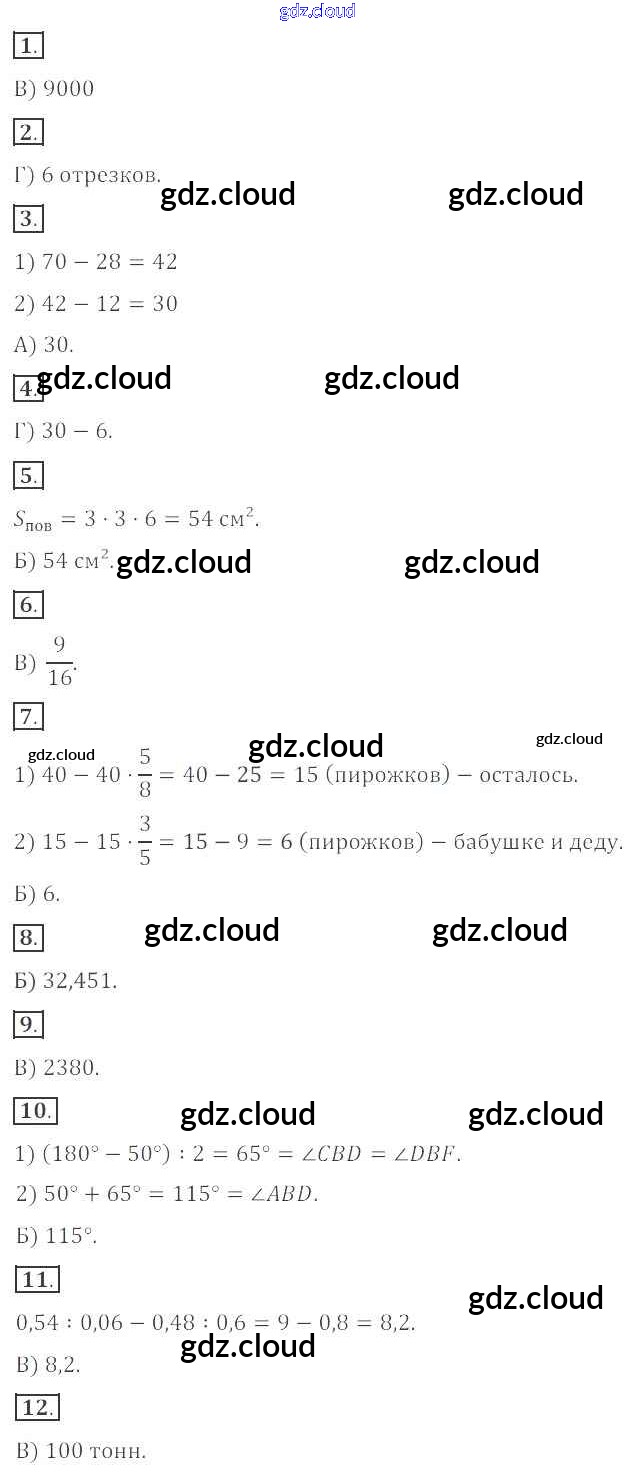 Ответы к итоговым заданиям в тестовой форме. Варианты по Математике 5 класс Учебник Мерзляк Алгоритм успеха Вентана-граф