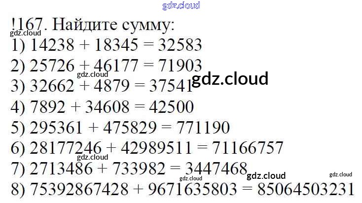 Ответ на задание 167 Учебник Математика за 5 (пятый) класс Мерзляк, Полонский, Якир Алгоритм успеха 2016