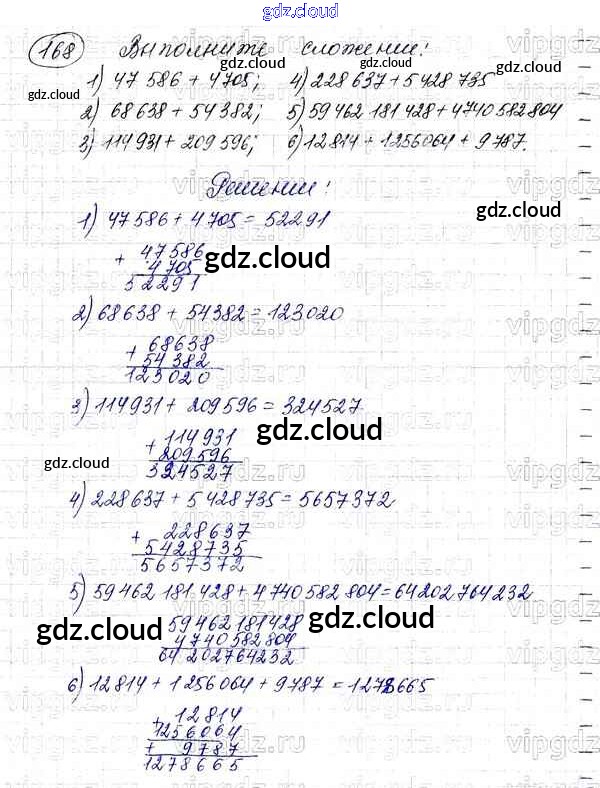 Ответ на задание 168 Учебник Математика за 5 (пятый) класс Мерзляк, Полонский, Якир Алгоритм успеха 2016